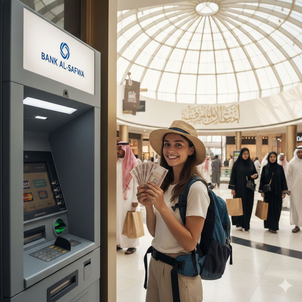 • Local Currency: Cash withdrawals are dispensed in Saudi Riyal (SAR) for local transactions.
